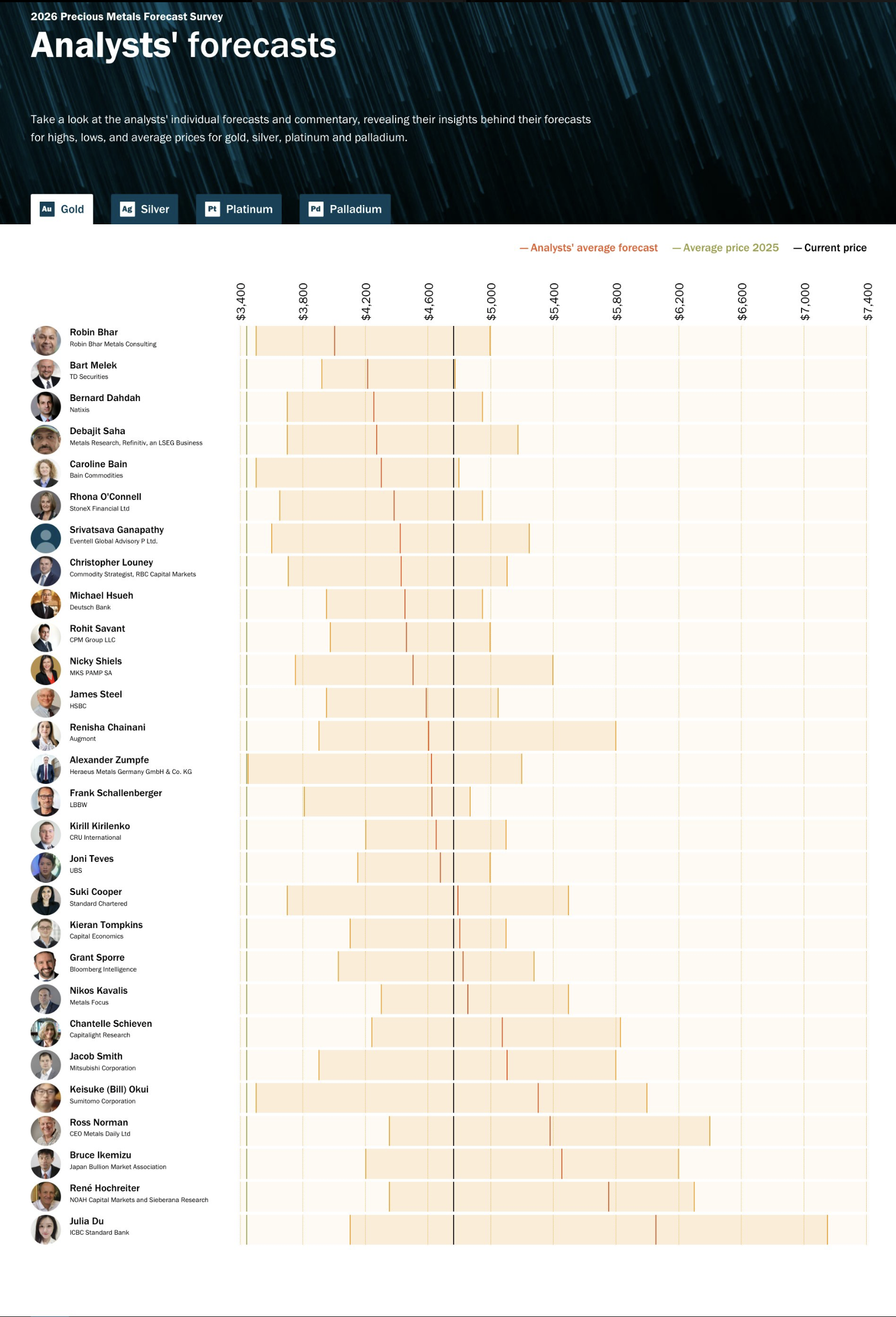 Below are forecasts from several different analysts for the 2026 price of Gold.