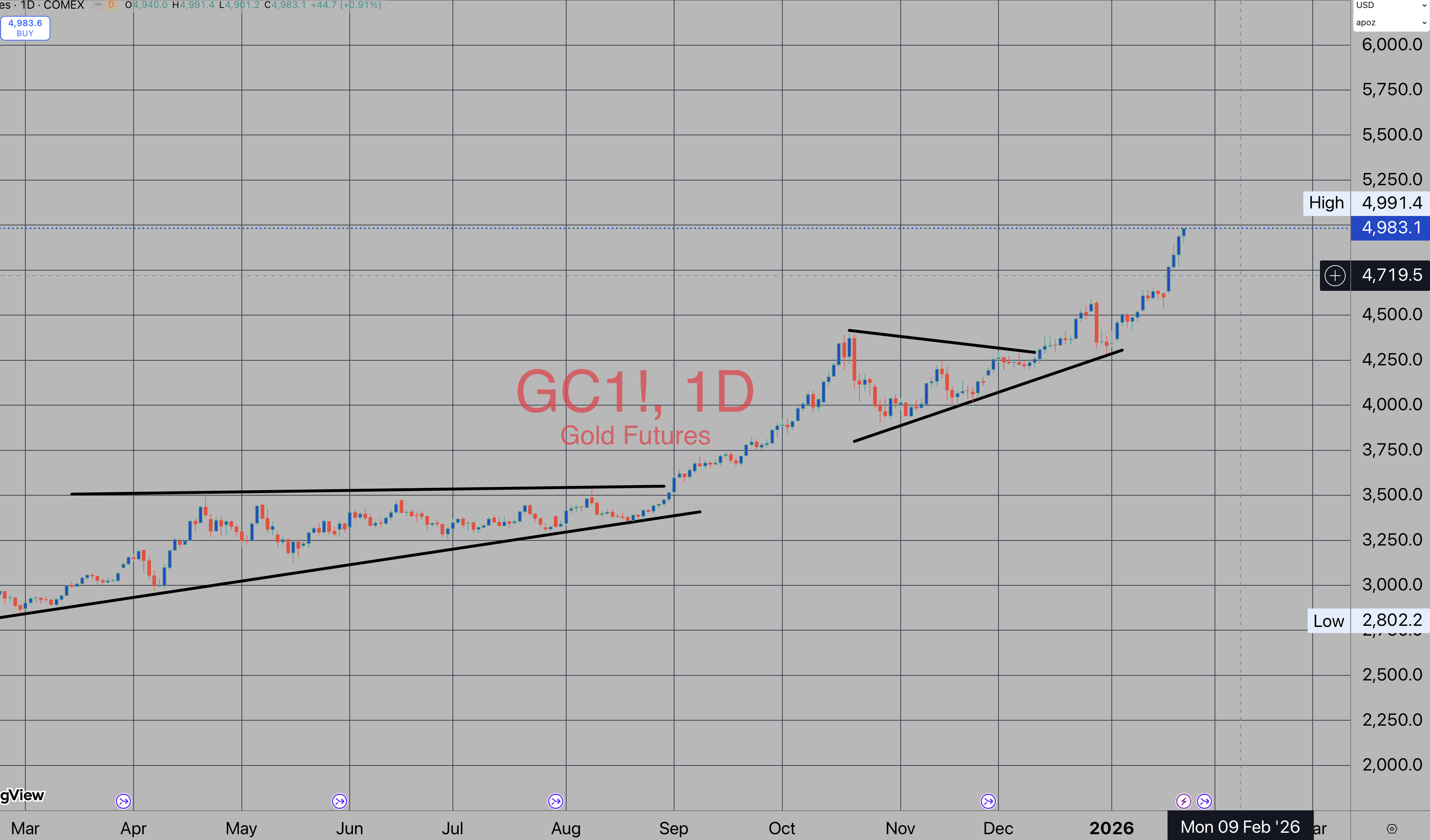 Gold is now Challenging the $5,000/oz level and Silver has breached $100 which is looking gorgeous technically:
